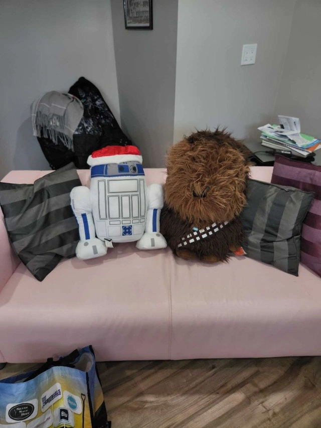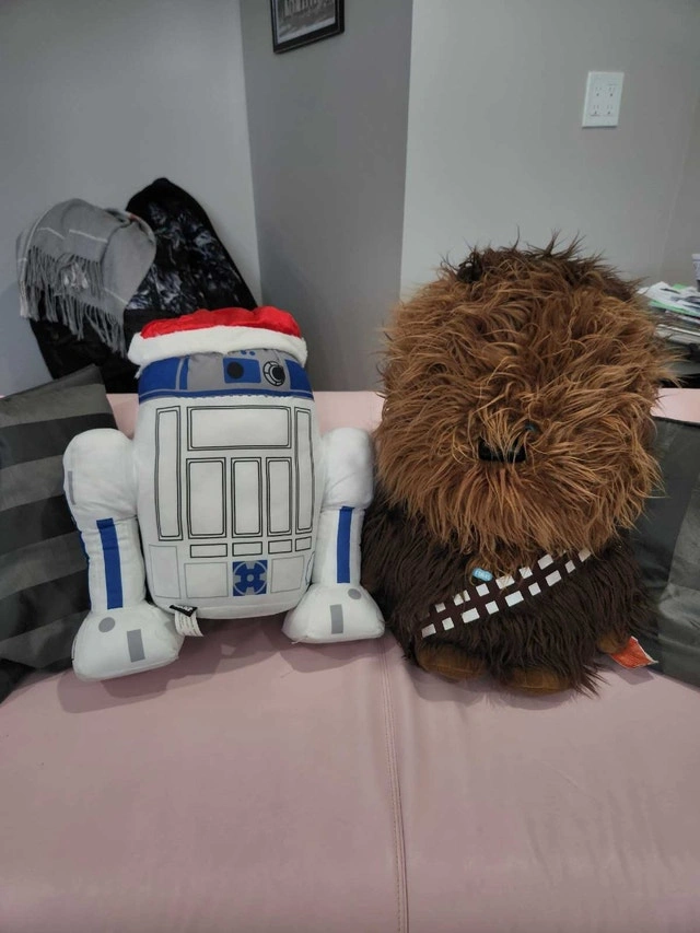 Selling a super cute Star Wars plush bundle featuring R2-D2 (with festive Santa hat) and Chewbacca. Both are in great condition and very clean. Perfect for Star Wars fans, collectors, or as a fun gift! Pickup in Calgary. Cash only.