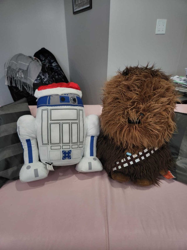 Selling a super cute Star Wars plush bundle featuring R2-D2 (with festive Santa hat) and Chewbacca. Both are in great condition and very clean. Perfect for Star Wars fans, collectors, or as a fun gift! Pickup in Calgary. Cash only.