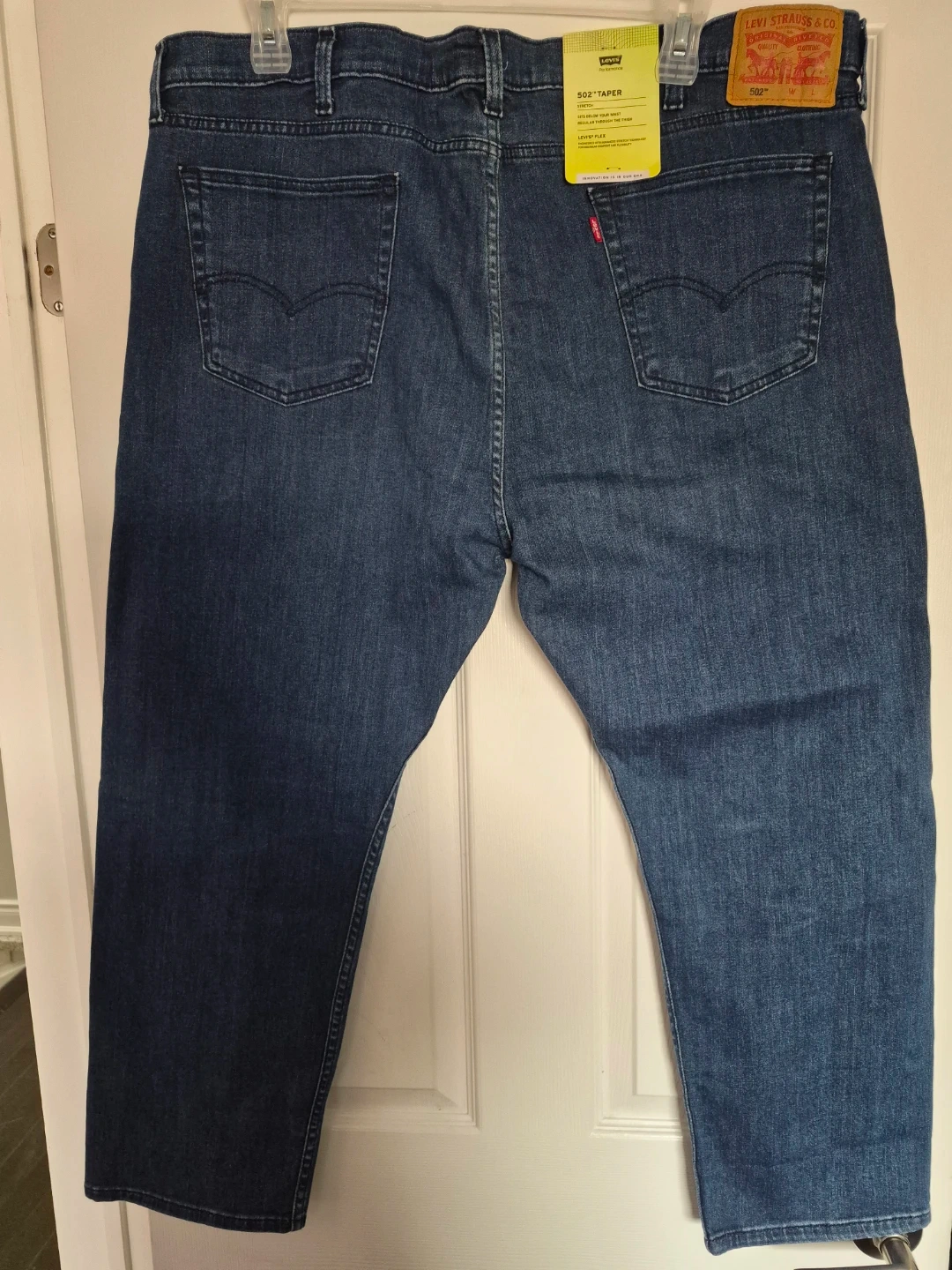 Brand new with tags Levi's 502 Taper jeans in a size 44x30. They're made from durable denim and feature a comfortable taper fit. Bought them from the Levi's store for $99.95 plus tax but the length is too short