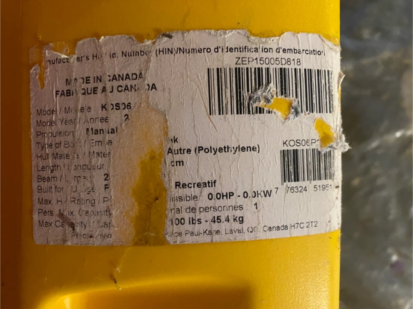 ▪️Hull material: polyethylene