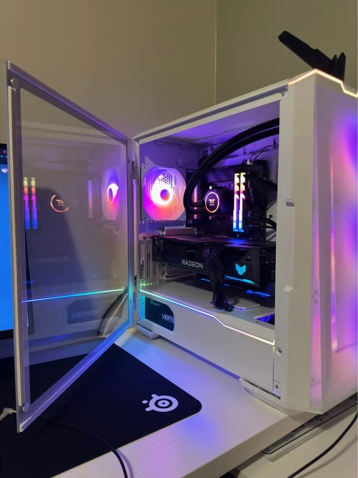 Case: White Phanteks tempered-glass mid-tower with RGB fans
