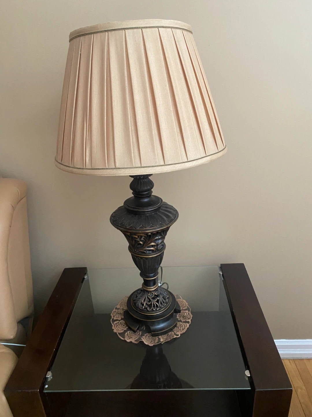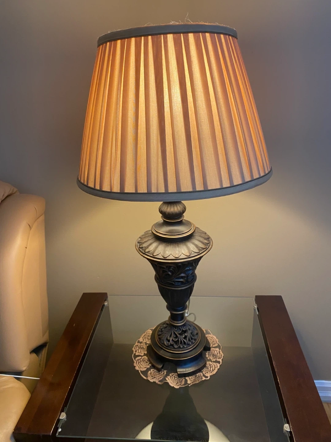 Ornate Table Lamp with Pleated Shade