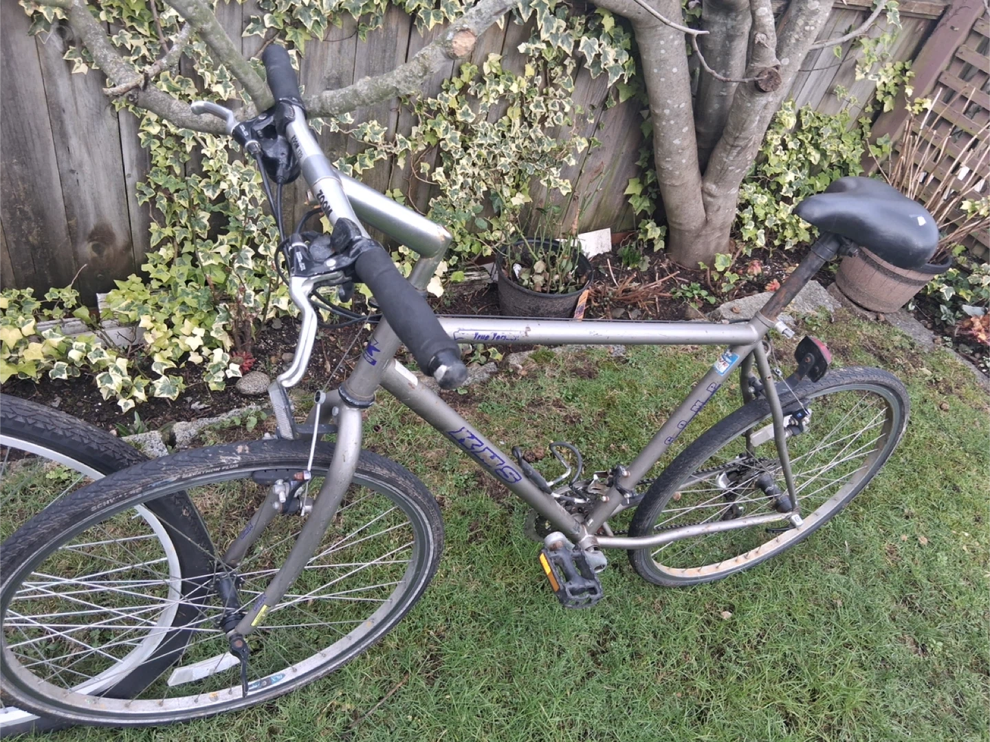 Light beige cruiser bicycle with brown accents and a black saddle. It's equipped with Shimano Nexus 8-speed shifters and fenders for a comfortable ride. This bike is great for leisurely rides around town.