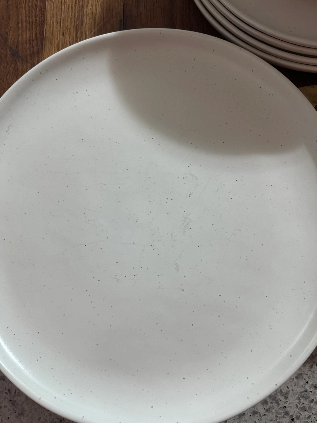 Set of 4 Fable Dinner Plates in Speckled White colourway.