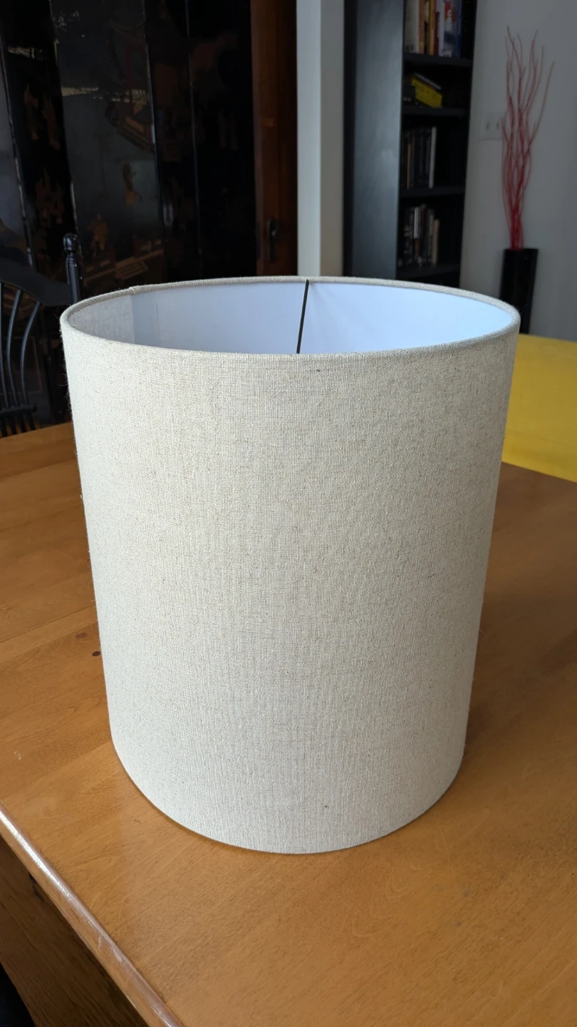This neutral linen Uno drum lampshade has a classic shape. It's made with a textured linen fabric and features a white interior.