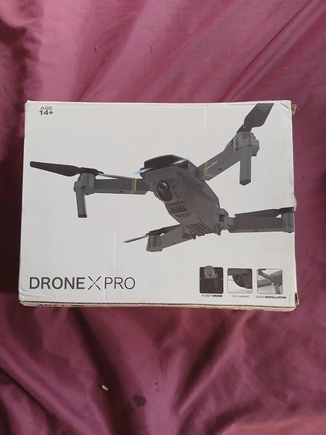 This is a Drone X Pro pocket drone. It's designed for quick installation and features a wide-angle lens. Includes HD cam and Wi-Fi connectivity.
