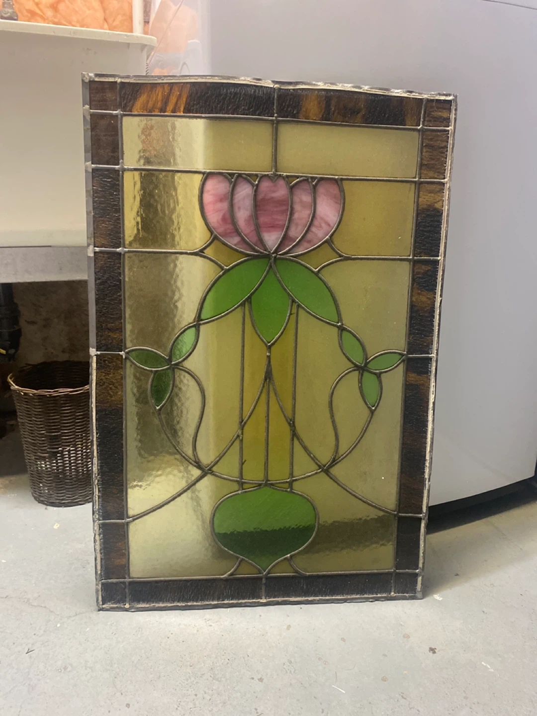 Selling a lovely stained glass window panel featuring a beautiful lotus design. It would add a touch of elegance to any room!