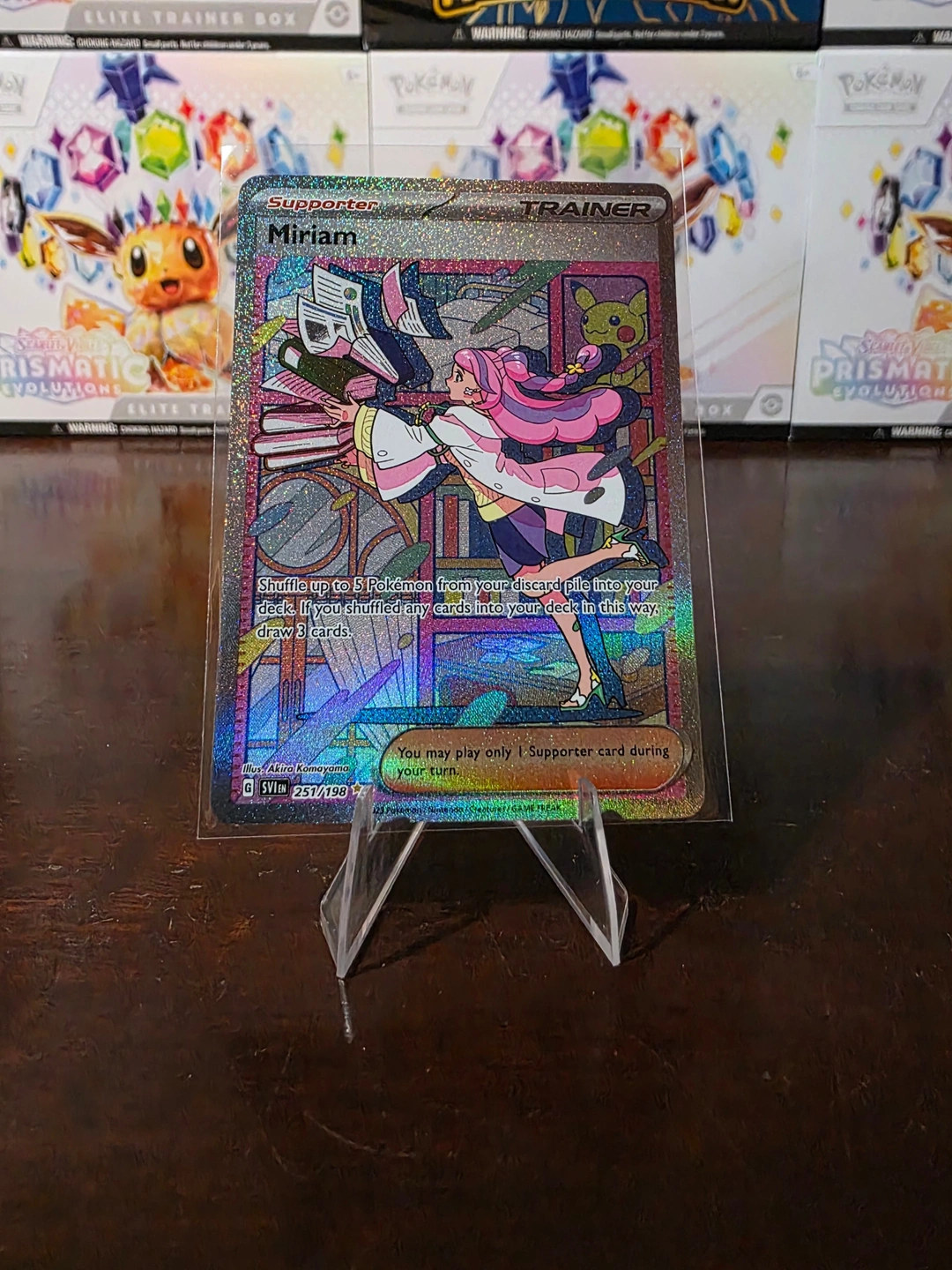 This Miriam 251/198 is a Secret Illustration Rare from the Pokémon TCG: Scarlet & Violet Base Set. A highly sought-after Trainer card featuring stunning artwork, Miriam remains a favorite among collectors and competitive players alike.