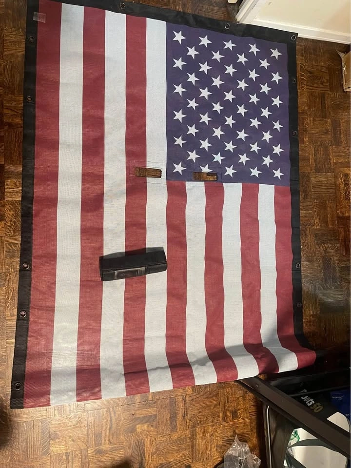 Shadeidea JL Top Sunshade for Jeep Wrangler JLU 4 Door Roof Mesh Screen Cover 2018-2023. American Flag design. Blocks wind noise and UV rays. Open box, never used.