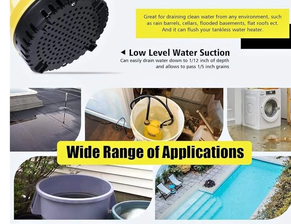 Portable 1/4 HP submersible water pump, ideal for removing water quickly and efficiently. Perfect for draining flooded basements, pools, hot tubs, water tanks, ponds, and utility applications. Compact and lightweight design makes it easy to transport and use. Simply place it in the water, plug it in, and it starts pumping. Reliable and practical tool for home, garage, or outdoor use.