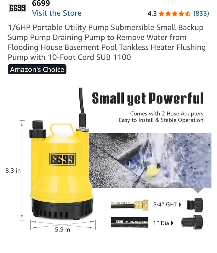 Portable 1/4 HP submersible water pump, ideal for removing water quickly and efficiently. Perfect for draining flooded basements, pools, hot tubs, water tanks, ponds, and utility applications. Compact and lightweight design makes it easy to transport and use. Simply place it in the water, plug it in, and it starts pumping. Reliable and practical tool for home, garage, or outdoor use.