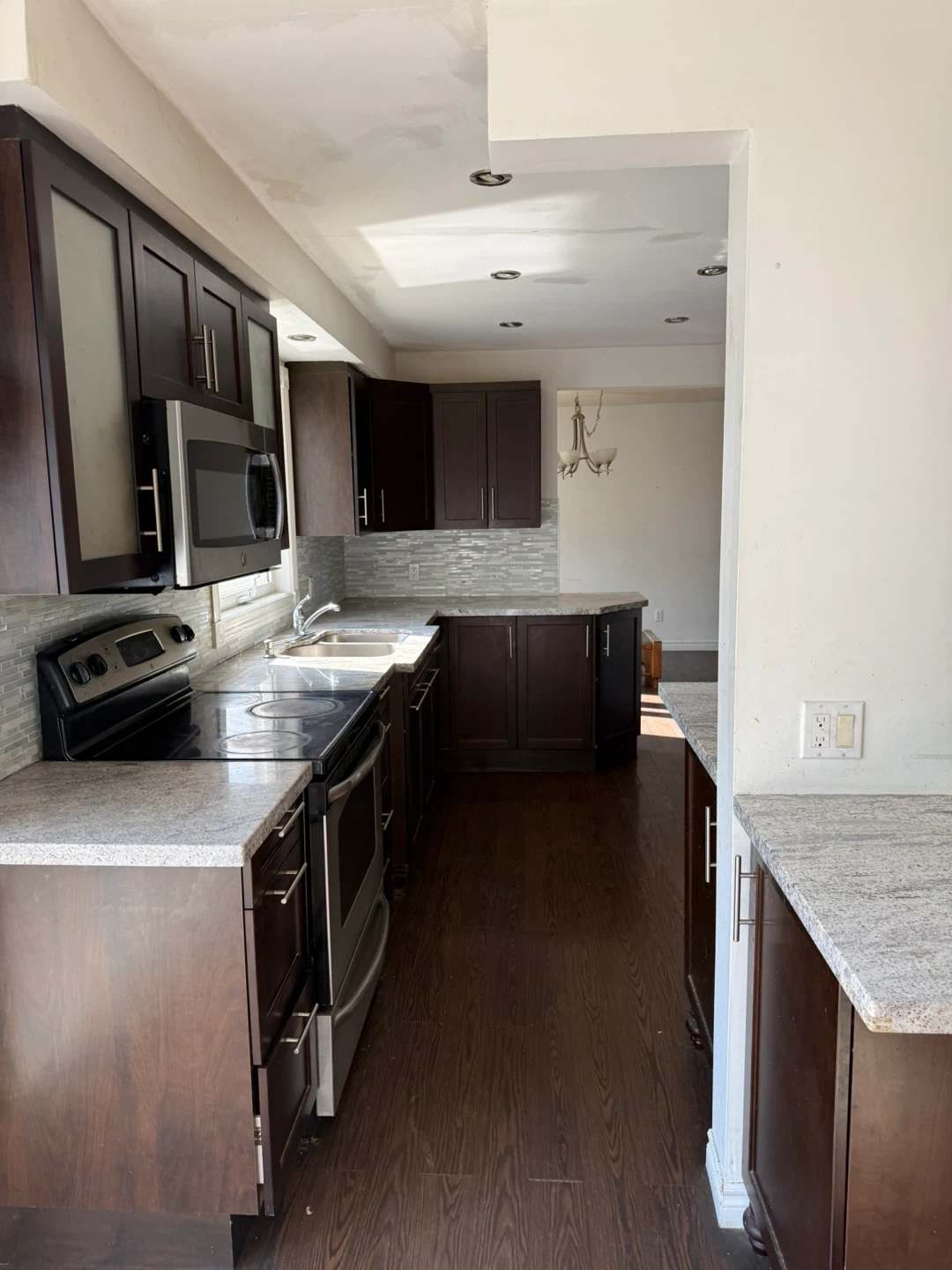Spacious home with multiple bedrooms and bathrooms. Includes a modern kitchen with ample counter space and dark wood cabinetry. Hardwood flooring throughout. Large windows provide plenty of natural light. Basement offers additional living space. Located in a quiet neighbourhood.
