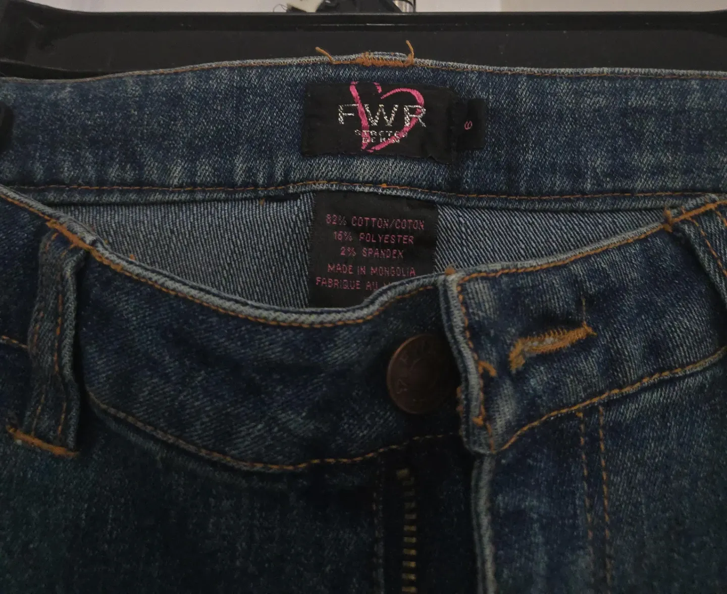 Selling a pair of FWR stretch denim jeans in size 6! They're made of 82% cotton, 16% polyester, and 2% spandex, making them super comfy and stretchy. Made in Mongolia!