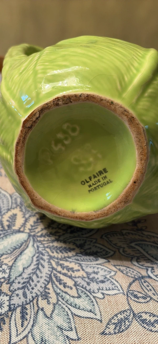 1950’s Olfaire Cabbage Leaf Pitcher Made in Portugal