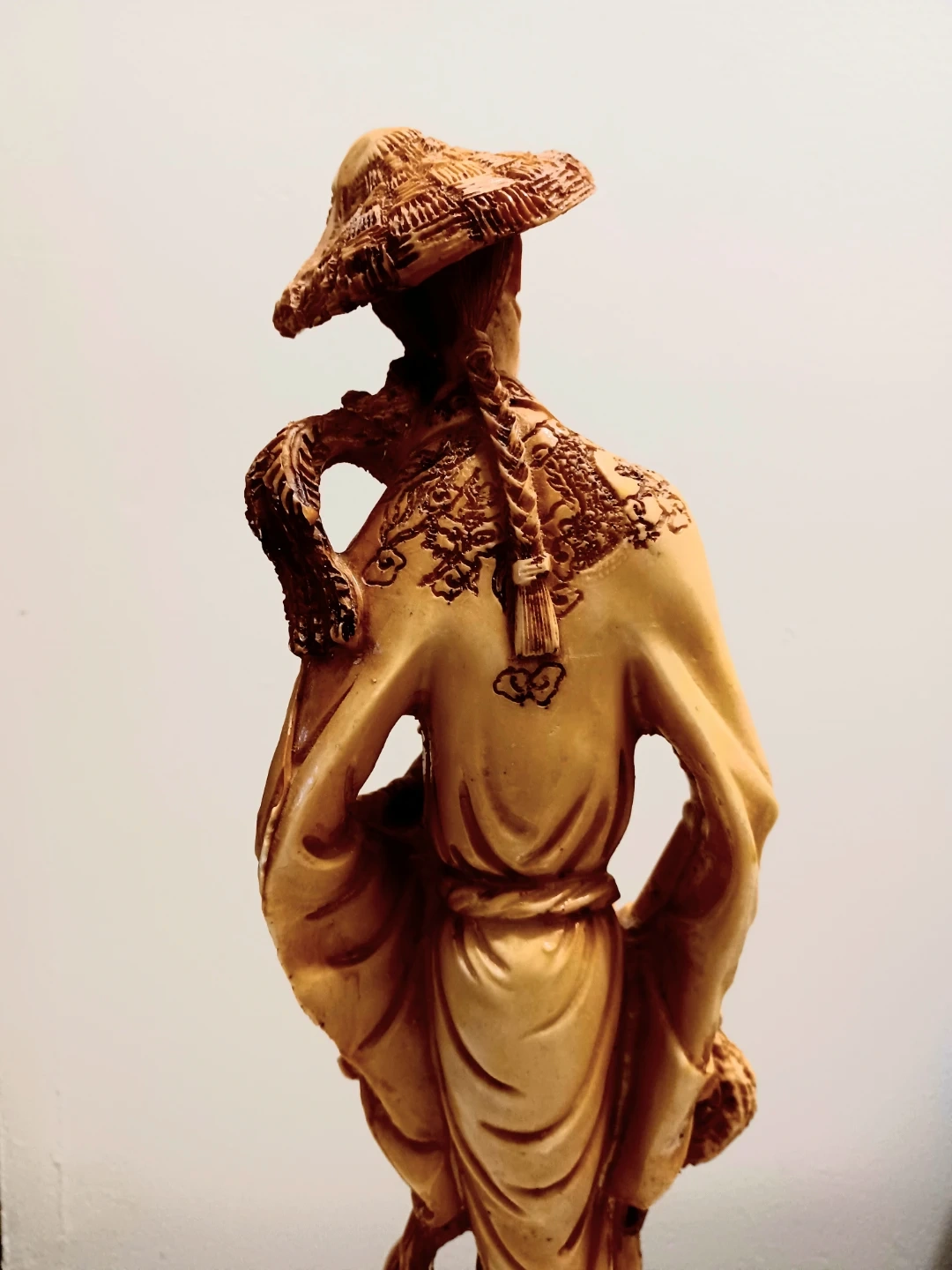 Tall Asian Man Statue. This unique , hand-carved statue is in Excellent condition and has a lot of detail. It would make a great addition to any home.