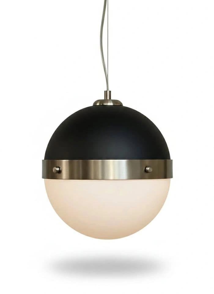 - Material: Spun Steel & Hand-Blown Frosted Glass