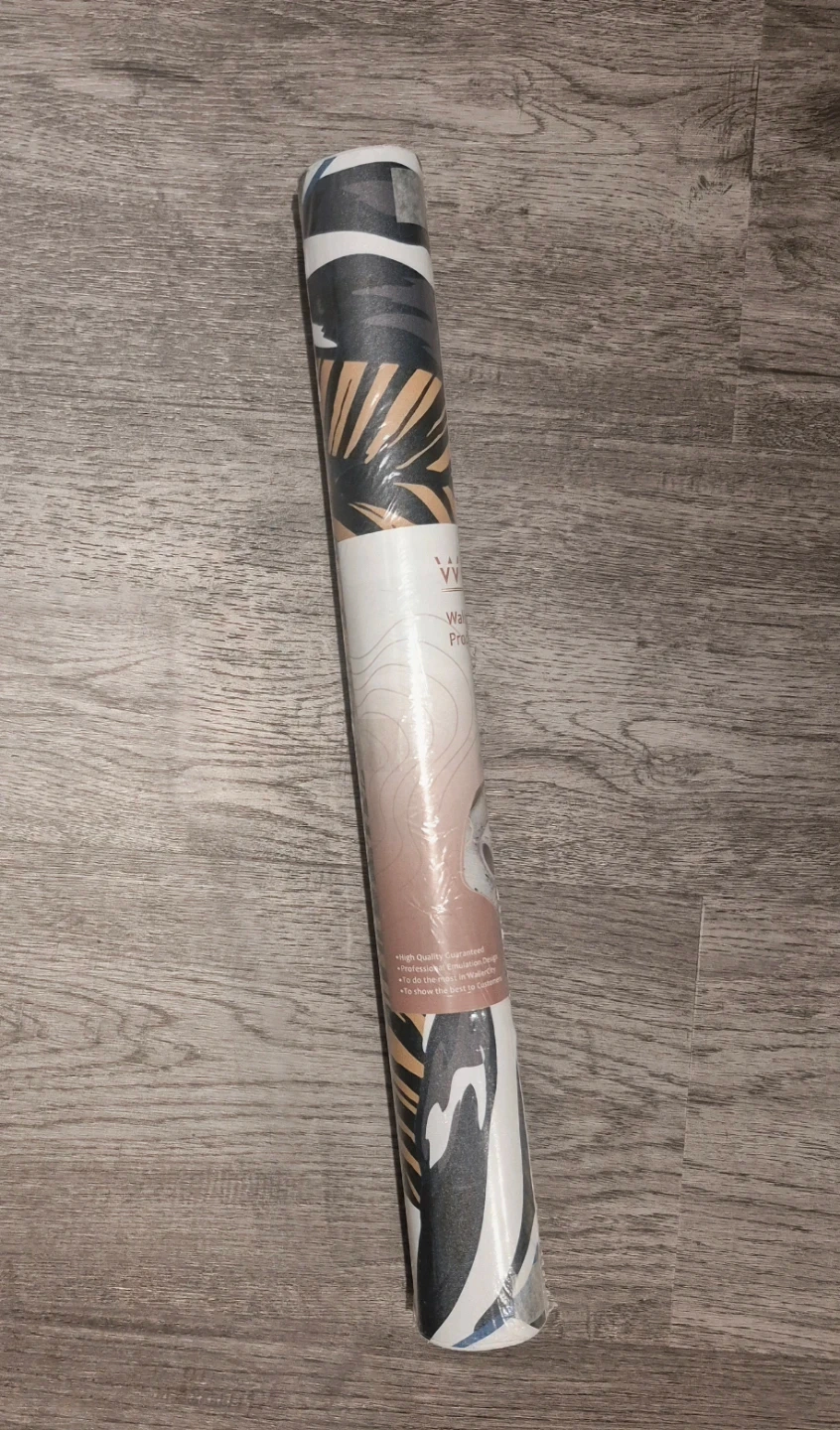 Features a vibrant tropical leaf pattern. New. 17.5" x78.7". Peel-and-stick, removable. It's a great way to add a pop of colour and texture to a room. Ideal for accent walls or furniture. Only 1 roll available.