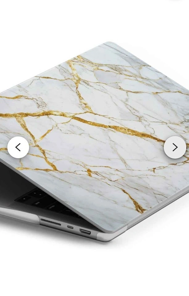 🧡Stylish hard shell case for your MacBook Pro with a white and gold marble pattern. Protects your laptop from scratches and dings. The bottom part has vents for airflow. Fits 14.5" models.