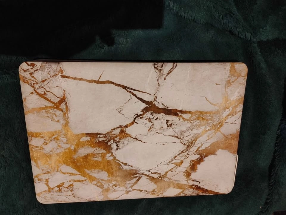 🧡Stylish hard shell case for your MacBook Pro with a white and gold marble pattern. Protects your laptop from scratches and dings. The bottom part has vents for airflow. Fits 14.5" models.