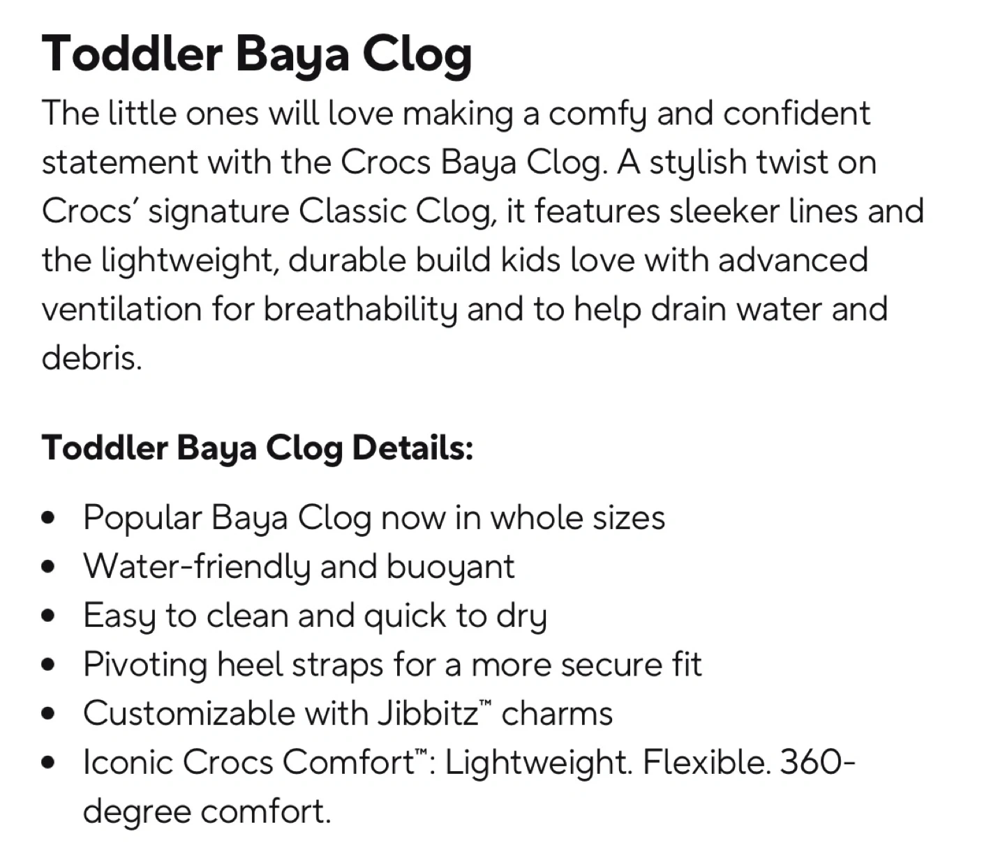 Crocs Toddler Baya Clog – Pink (Size C5)