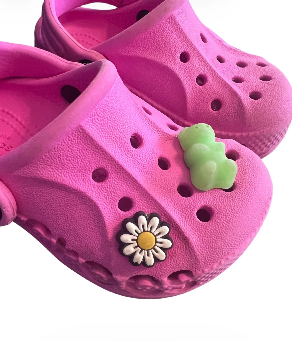 Toddler Crocs Baya Clogs in bright pink—lightweight, comfortable, and perfect for everyday wear. Comes with 2 Jibbitz charms.