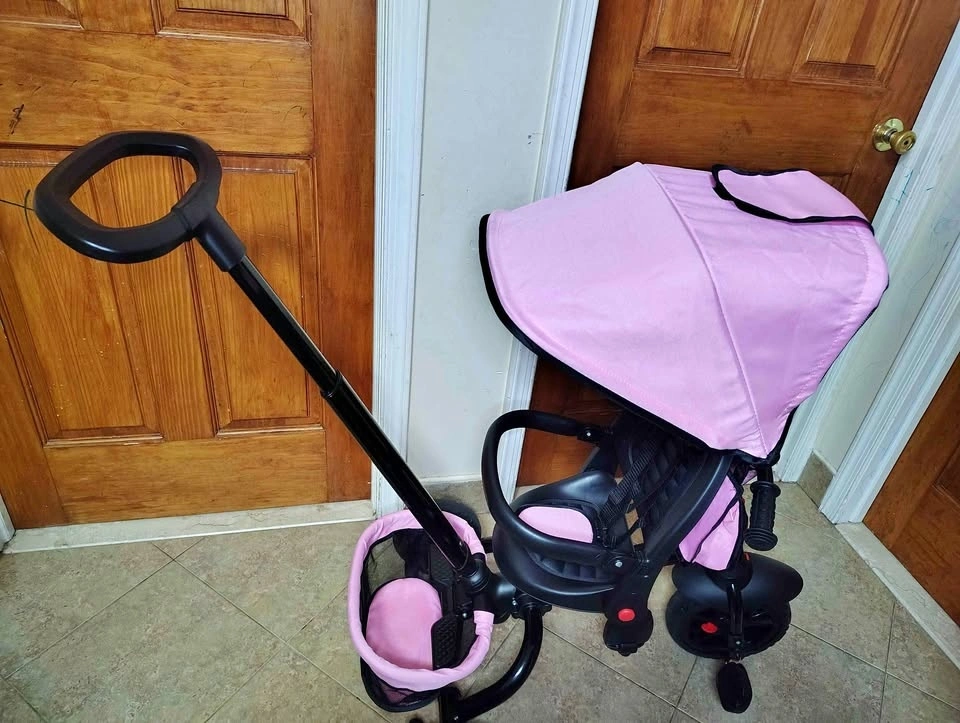 Selling a versatile pink push tricycle that grows with your child! This is perfect for toddlers who aren't quite ready for a standard bike but want to explore. It functions as both a stroller (controlled by parent) and a learner trike.