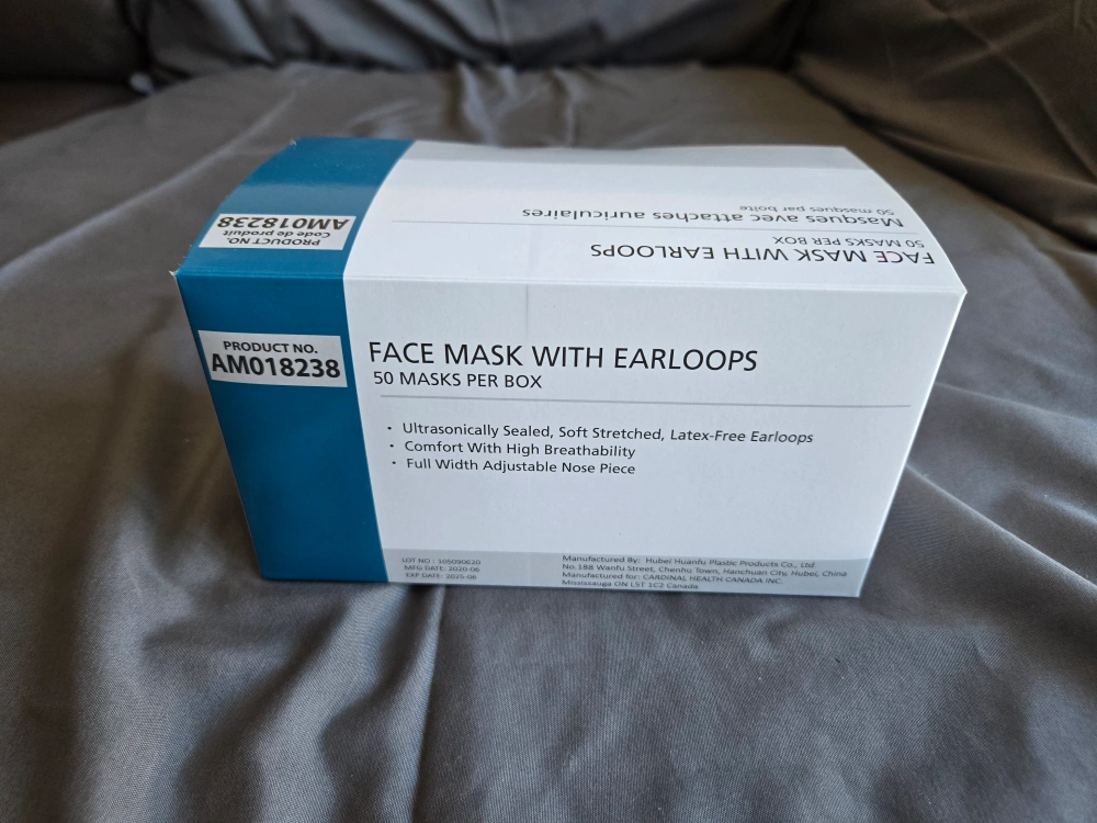 10Selling boxes of face masks with ear loops! The box contains 50 masks. They are ultrasonically sealed, soft, stretched, and latex-free. They also have a full-width adjustable nose piece.