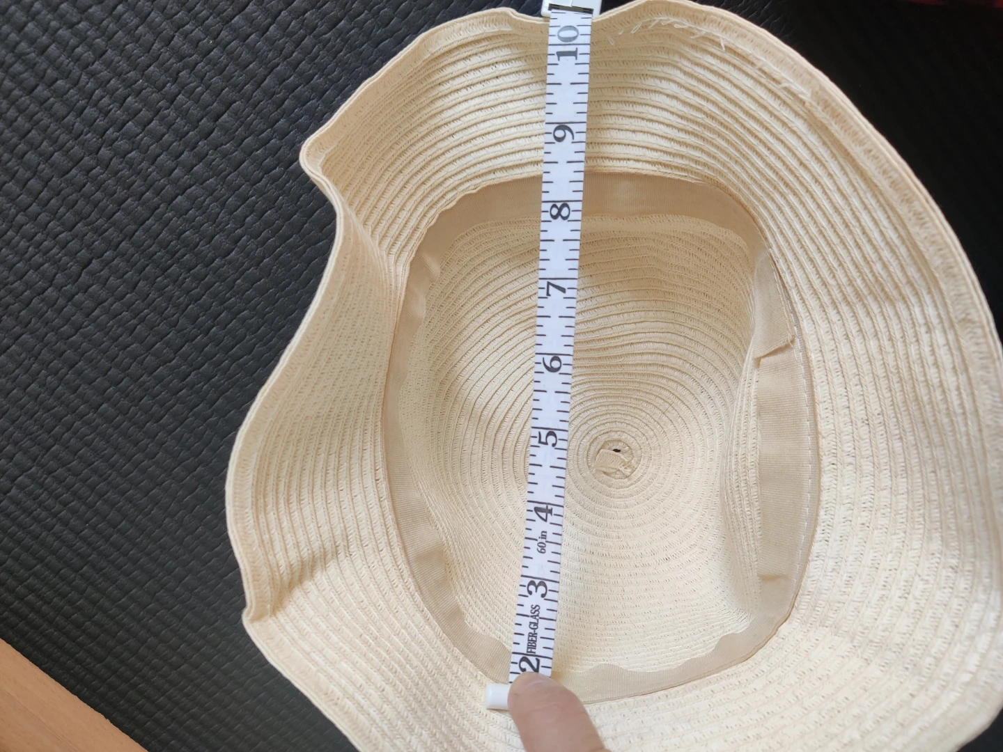 Cream straw sun hat decorated with fabric flowers and ribbon trim. The inner circumference measures approximately 21 inches. It's a lovely accessory for sunny days!