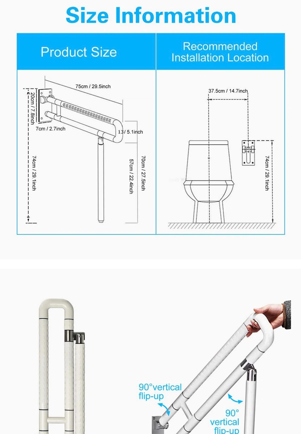 Foldable Toilet Grab Bar with Leg