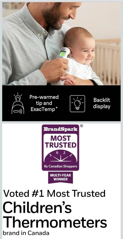 This Braun thermometer is used by many pediatricians and mothers. It's a safe and accurate way to take your child's temperature. The small, soft speculum is ideal for infants, and disposable lens filters help prevent germ transfer. Measures 2 x 6.5 x 1.5 inches (WxHxD); 9.6 ounces. Pick up in Courtice. Please check my other listings!