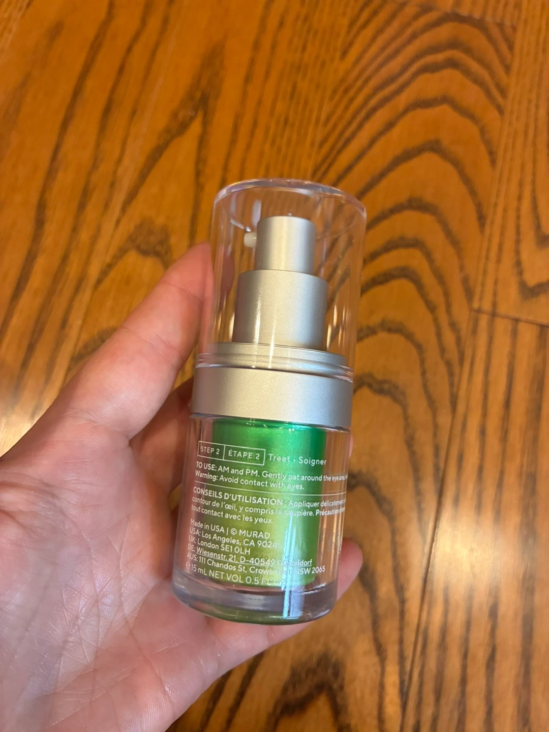 Murad Retinol Youth Renewal Eye Serum. This eye serum comes in a 0.5 fl oz (15 ml) bottle. Made in USA. Use AM and PM, gently pat around the eye area.