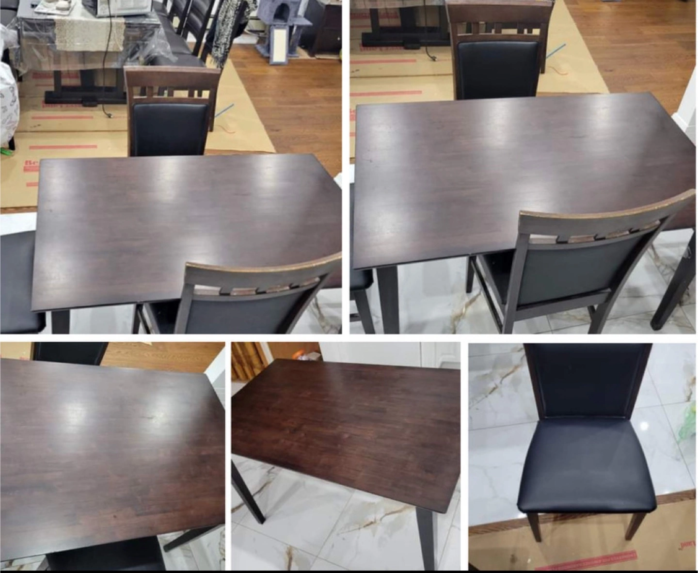 Selling a dining table with four chairs. The set is a dark brown colour and in good condition. Perfect for a small dining space or kitchen nook! $75
