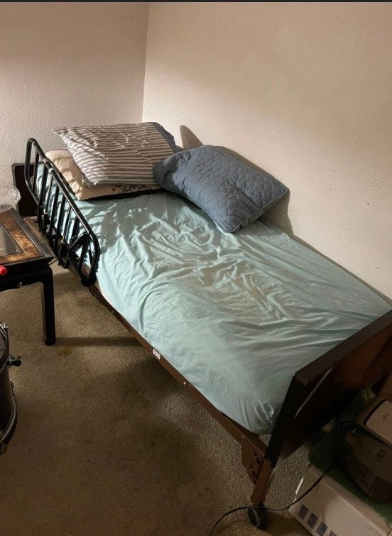 Selling a fully electric, lightly used adjustable hospital bed for medical in-home use. Great for homecare! Features a wired pendant remote with six buttons. The bed can adjust from lying to sitting position and vice versa. It also has a knee rest for support and the height can be adjusted from 10" to 36". Includes a drive redistribution foam mattress (approx. 36"x80"). Adjustable bed: $400. Mattress: $100. Together: $500. A low air loss mattress is also available. Message me your questions, I will get back to you ASAP!