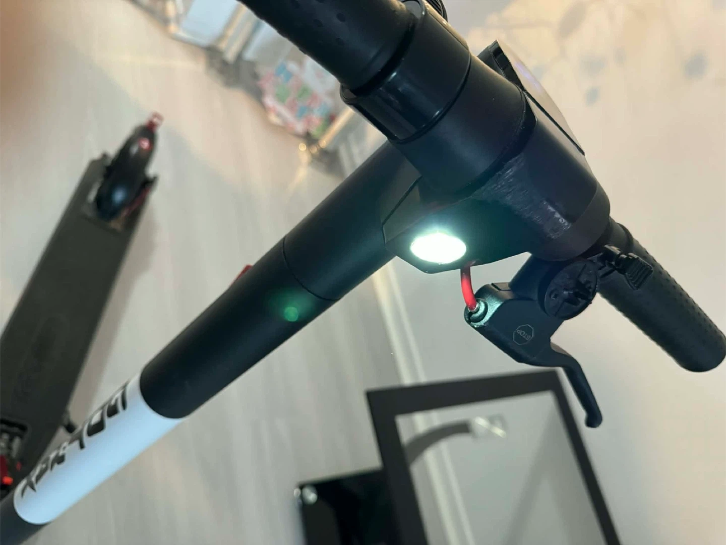 Condition is good. There is one small scratch above the headlight, but it does not affect the headlight or how the scooter works.