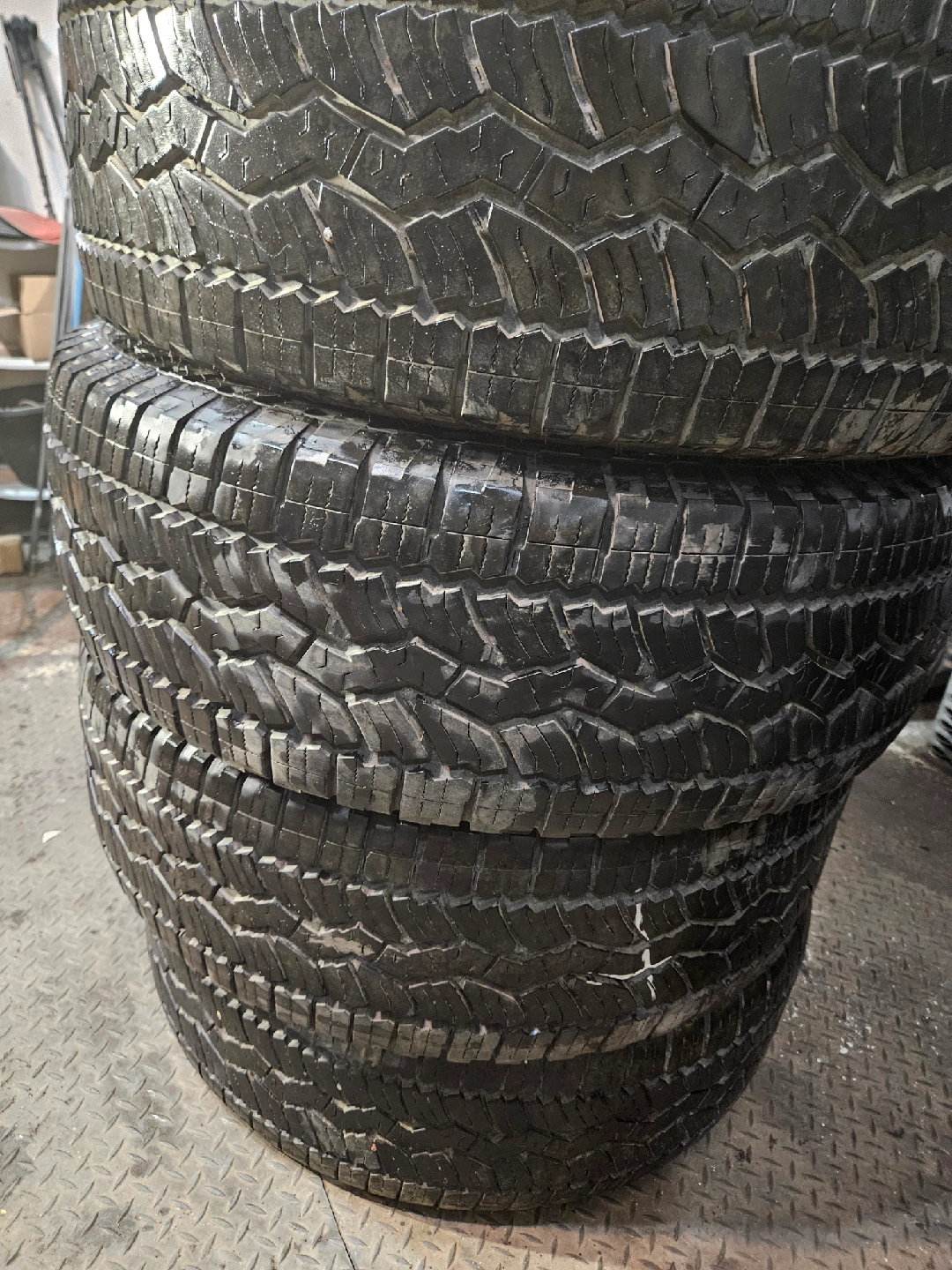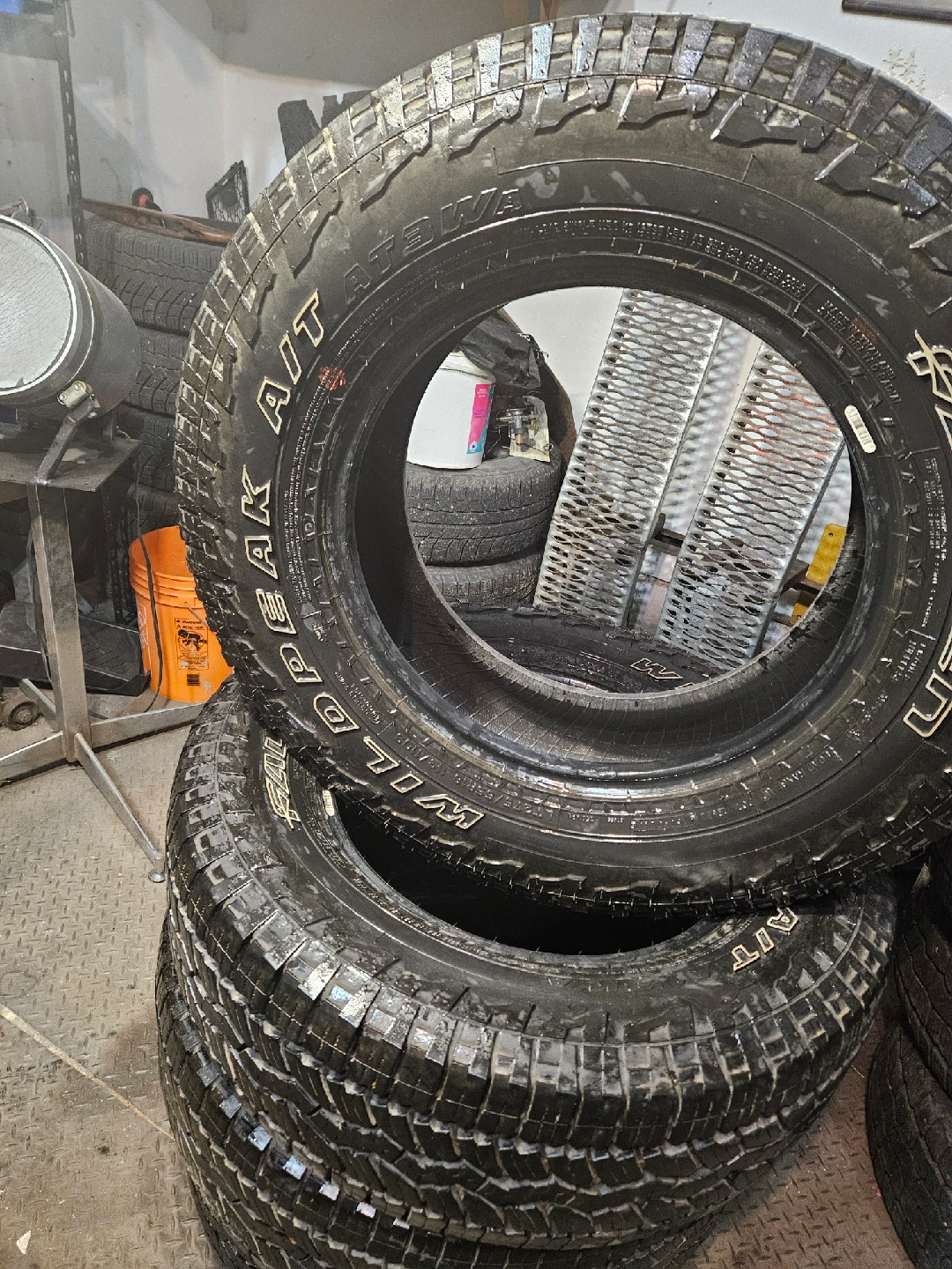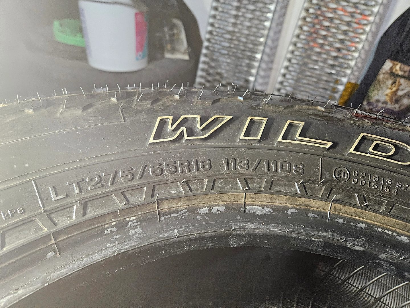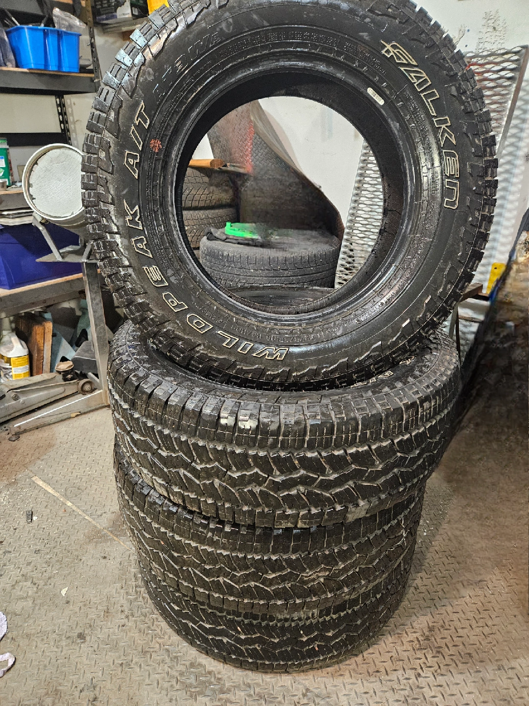 Set of Falken Wildpeak A/T tires for sale. Size is LT275/65R18. They have a load index of 113/110S.Pick up, cash only. about 80% treat left.