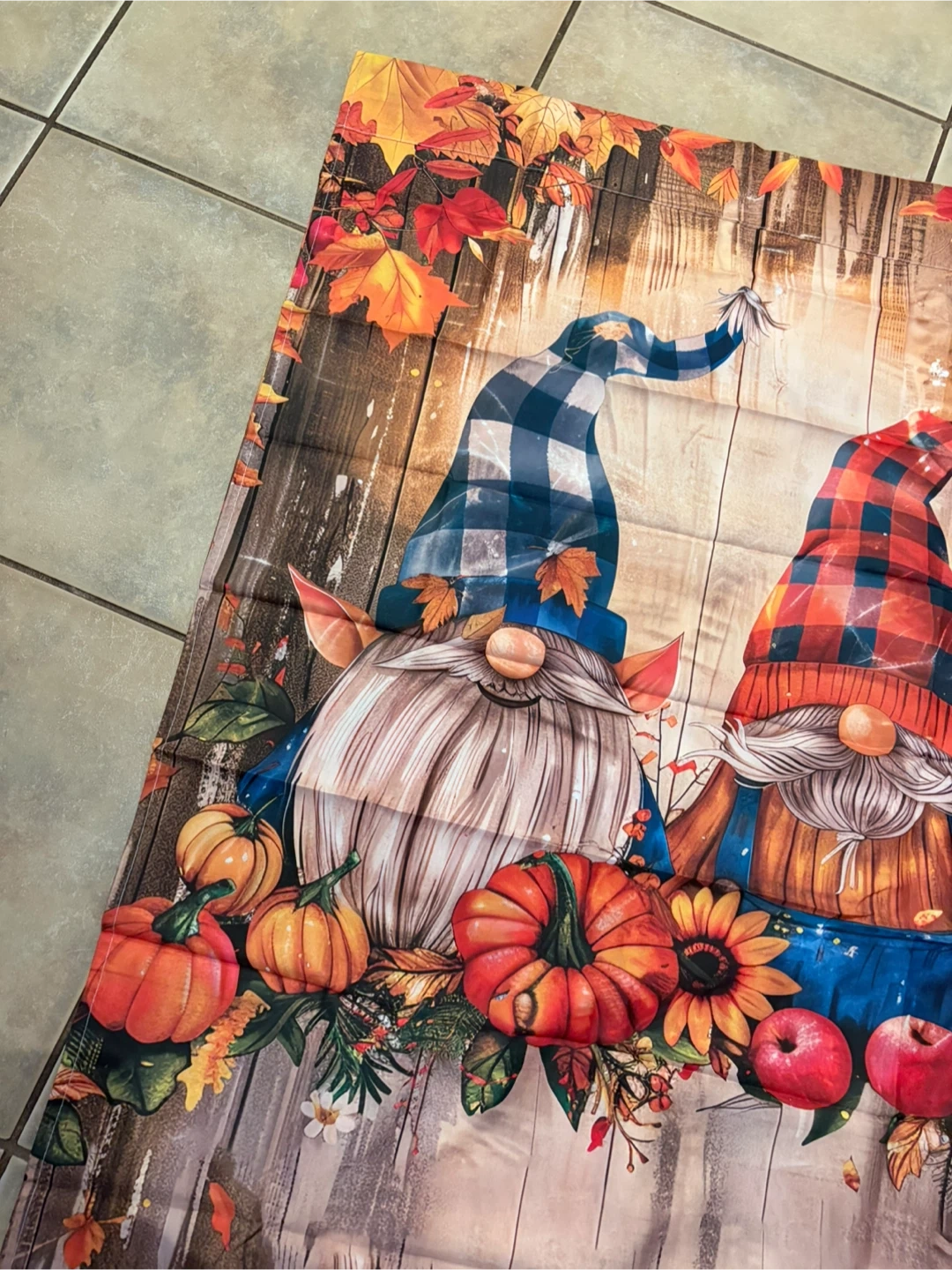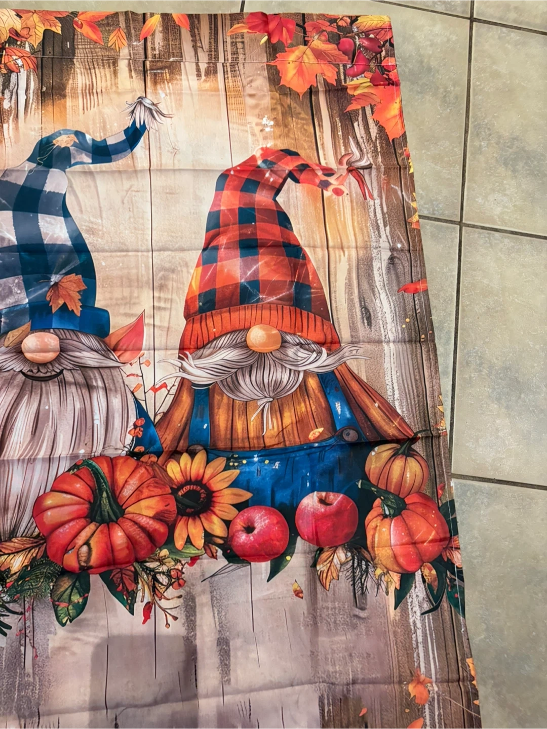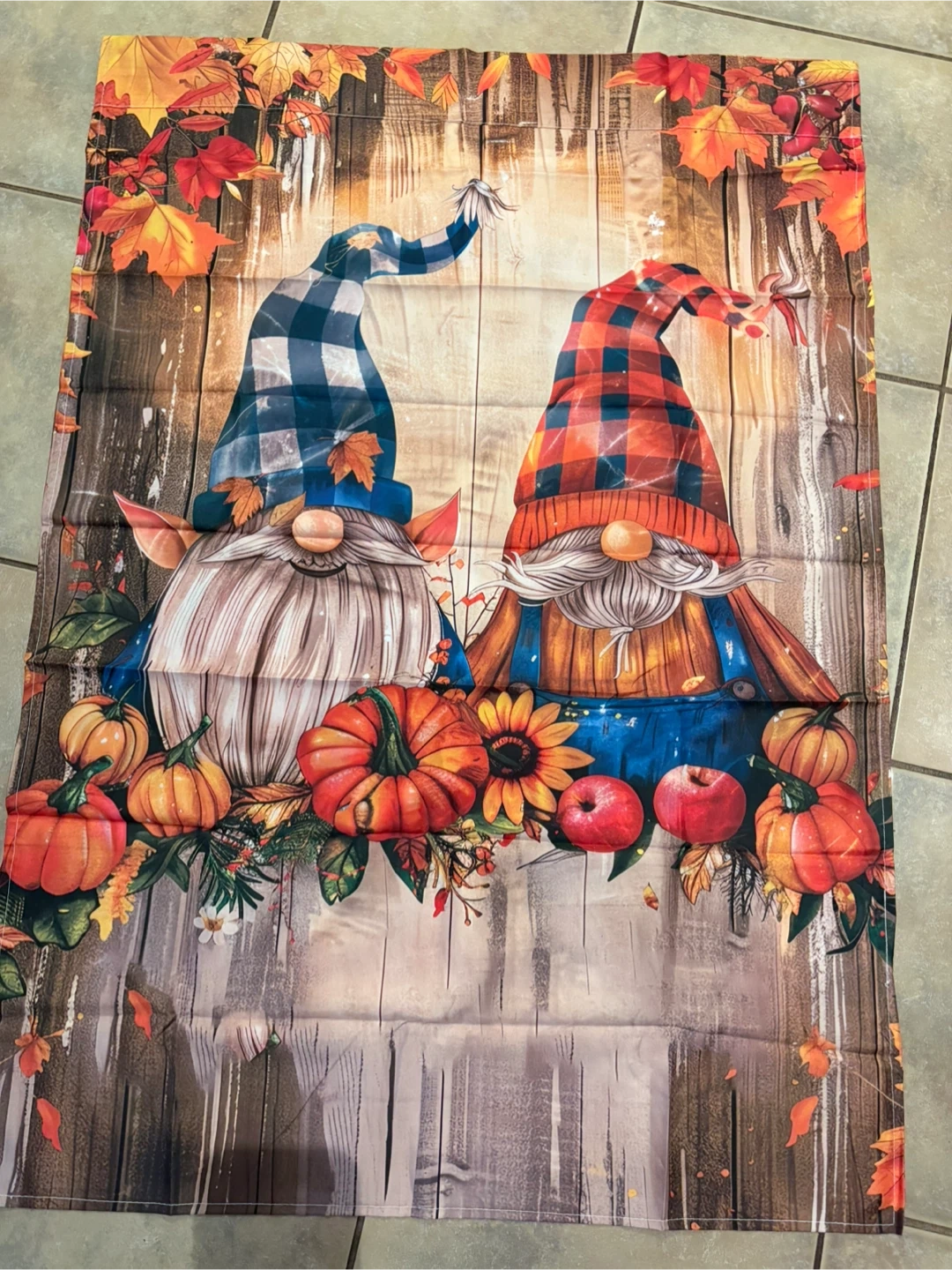 98Add a touch of autumn charm to your home with this delightful fall gnomes tapestry, perfect for adding a cozy and festive vibe to any room. This flag features two whimsical gnomes surrounded by pumpkins, sunflowers, and vibrant fall foliage, creating a warm and inviting scene. The flag is in brand new, ready to bring seasonal cheer to your outdoor decor. Additional details: * Design: Two gnomes with pumpkins and fall foliage * Condition: Excellent 24in x 40in * Perfect for fall decor Spruce up your outdoors with a dash of gnome magic this autumn! If the ad's still up, the outdoor flag is available.