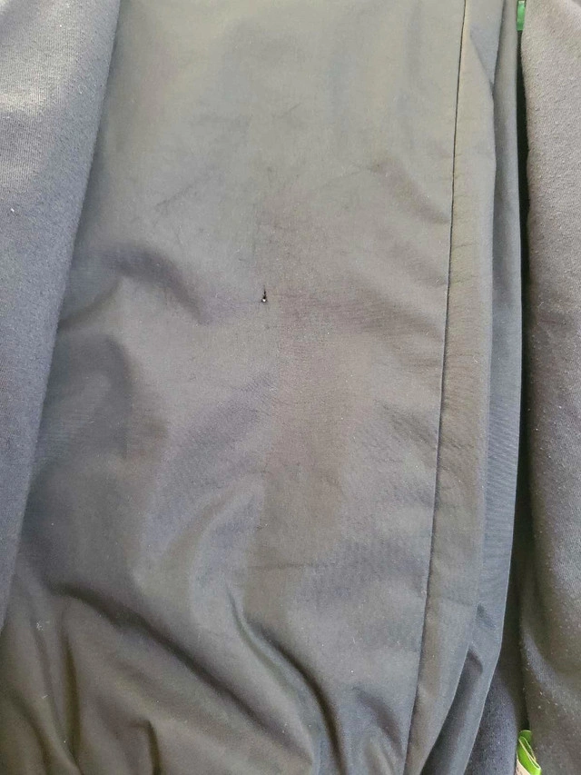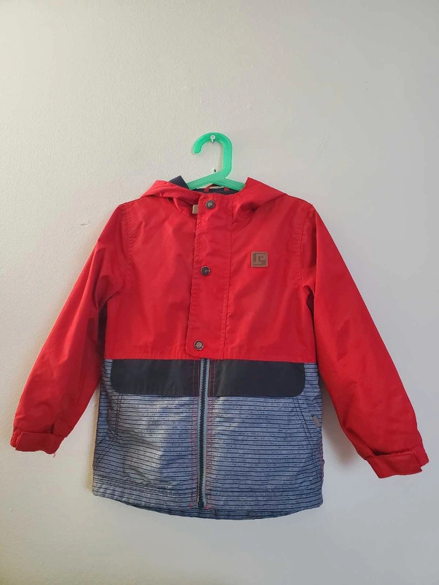 15This is a Peluche & Tartine jacket, perfect for keeping your little one warm and stylish! The jacket is a vibrant red and black and features a hood for extra protection against the elements. This jacket is in used condition, with a small hole on the pant, but it is otherwise in great shape and ready for a new home. Features: * Brand: Peluche & Tartine * Colour: Red and black * Size: approximately 5 years old. * Hooded for extra warmth Size: Size 6 Kids Clothes