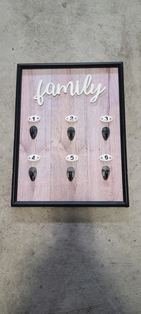 10Organize your keys with this cute 'family' key holder! It features six hooks, each with a numbered label above. A great way to keep track of everyone's keys!