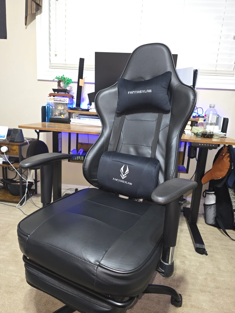 10Selling a FantasyLab gaming chair in black. It's in great condition and ready for a new home. This chair has excellent support for long gaming sessions or working from home. It also comes with a head pillow and lumbar support pillow for extra comfort