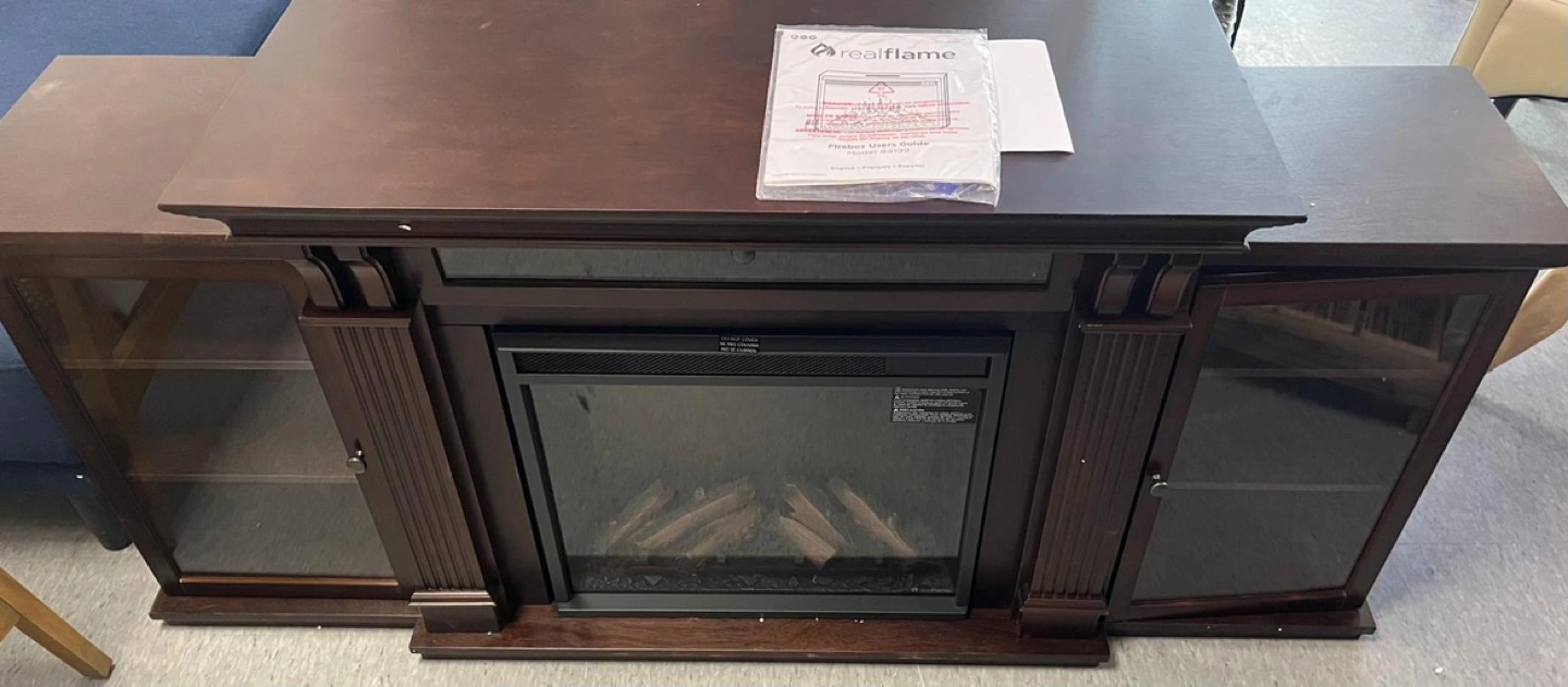 Brand new out of the box TV Stand with real flame fire place.