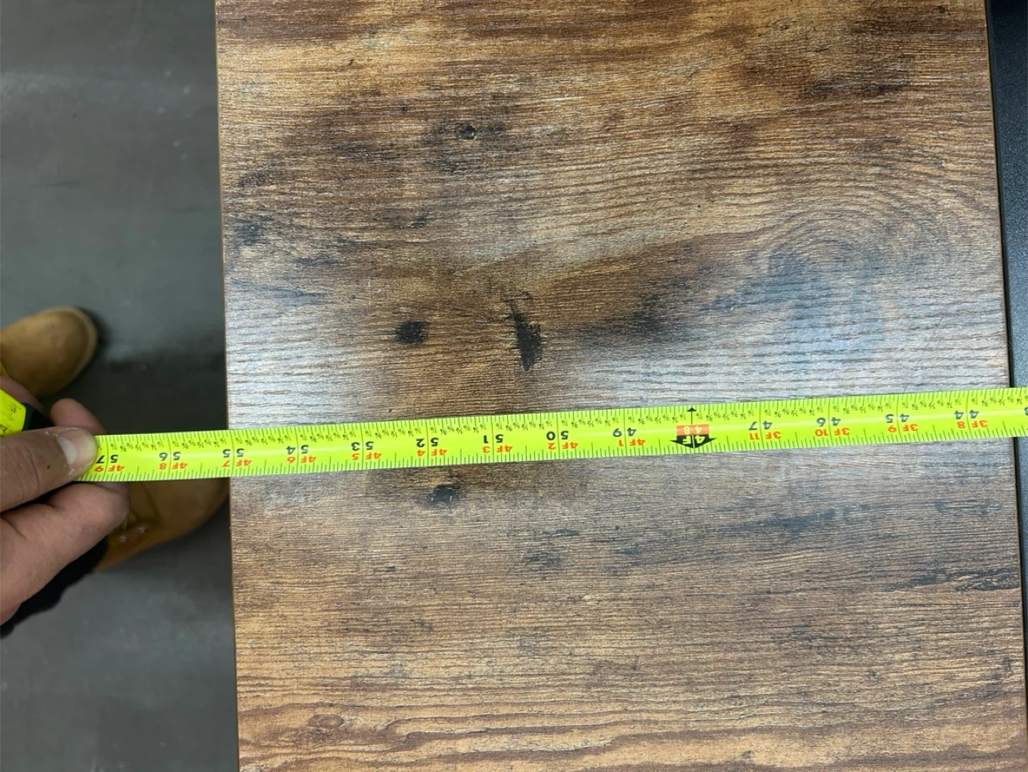 This console table features a rustic wood-grain top with a black metal frame. It's a sturdy piece for entryways or living spaces. Dimensions are approximately 40 inches long by 18 inches deep and 30 inches tall.