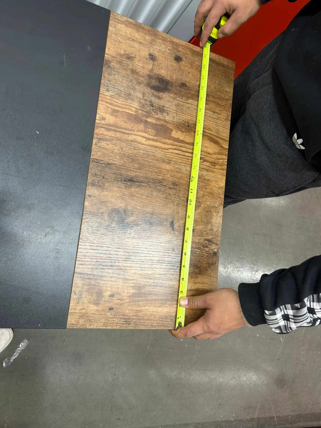 This console table features a rustic wood-grain top with a black metal frame. It's a sturdy piece for entryways or living spaces. Dimensions are approximately 40 inches long by 18 inches deep and 30 inches tall.