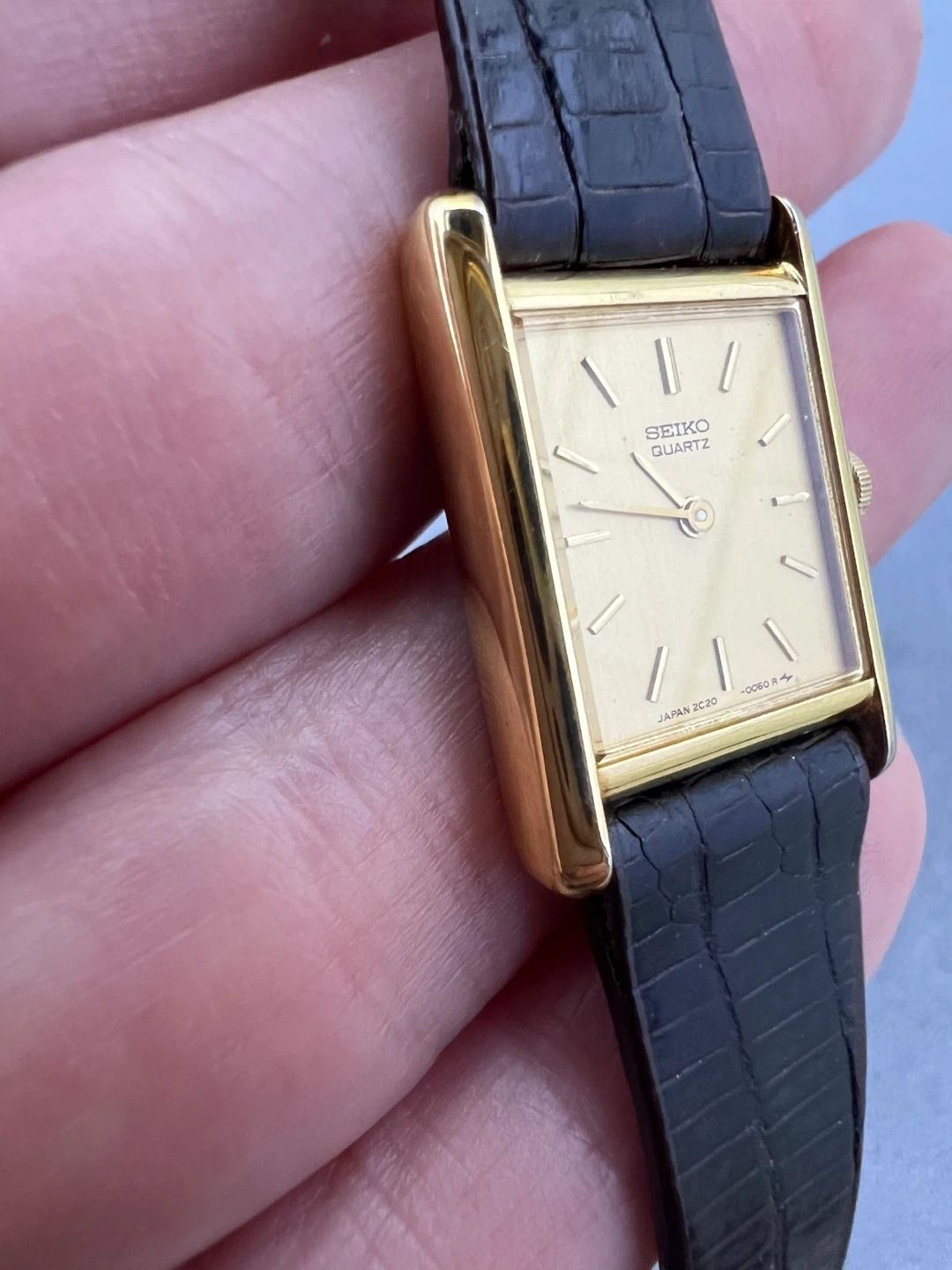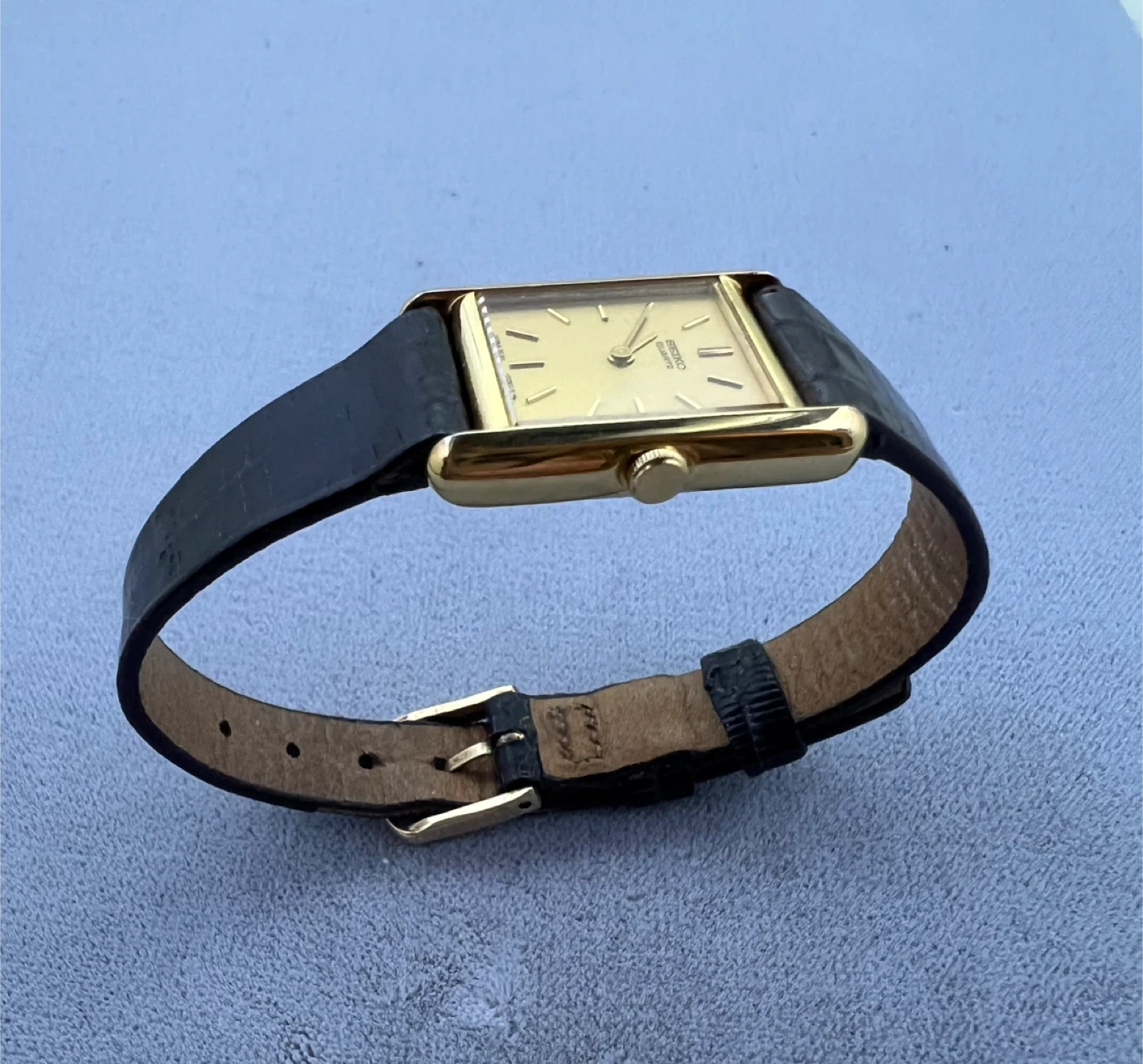 Its rectangular silhouette is often referred to as a "Tank" due to its similarity to the iconic Cartier Tank design
