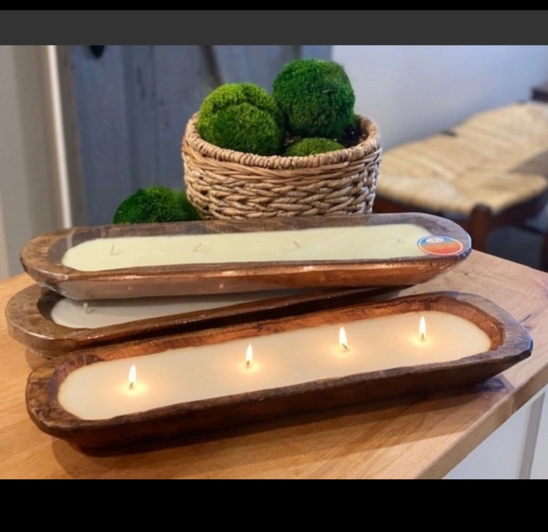 NEW - unused, unlit. Good condition, without original plastic wrapping INCLIDED: ONE Wooden dough bowl 4 wick Candle 19x5.7 inch, Handmade Soy Candle, Farmhouse Home decor Retails for about $100 online retailers, in-store and in farmer's markets. Materials: - 100% soy wax (scented in "Sea Salt") - Handcarved Spanish oak wood - 100% Cotton wicks Perfect to use as in your Christmas table setting! Create an earthy, soothing ambience in any room of the home with this 20" dough bowl candle by Forever Green Art. Hand poured with 100% scented soy wax in Sea Salt scent - a soft delicious aroma that is not overpowering. This bowl is hand-carved and may have variations in color, size and shape. Please also note, this wooden bowl has bends, curves, carvings, knife marks, a flex, or arches due to being handmade. Visually pleasing when this candle is lit. It makes a perfect display for home décor for all seasons, gift for any occasion, an eye catching centerpiece, with a vintage and rustic look. A perfect spring, fall, summer display for your home. Once the entire candle has been used, you can remove the excess with soap and water. This wooden dough bowl can then be repurposed as a decorative accent, a catch-all tray, and a planter for displaying flowers and plants. Hand crafted by artisans in Mexico, this carved bowl represents a dish that was used for kneading bread and making tortillas. Crafted from Spanish oak. Use caution when lit, do not leave unattended. Adult use only. Disclaimer: Check your government's candle care safety tips online for their recommendations and instructions on how to safely use candles in your home.