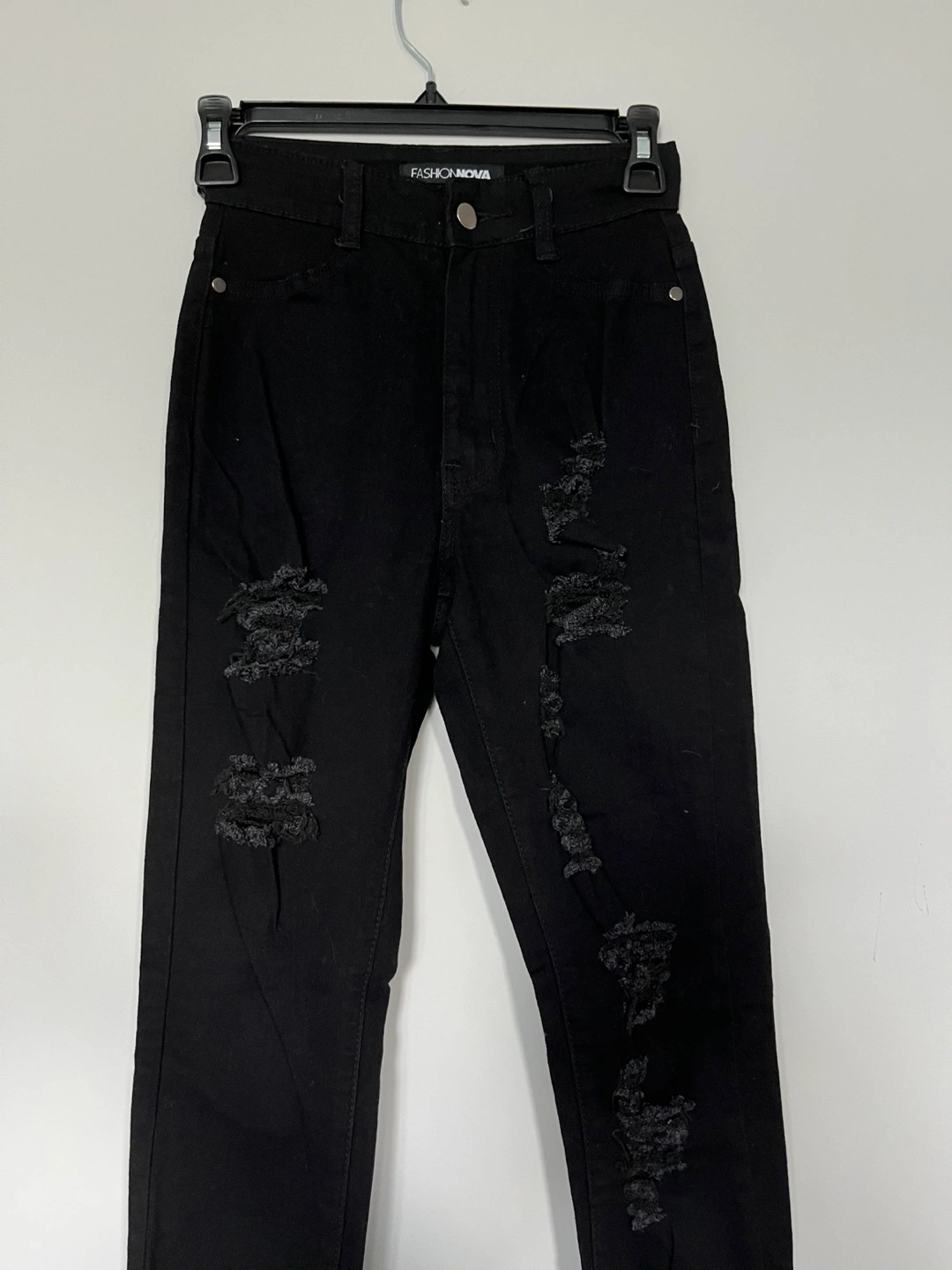 Selling these black ripped style fashion, Fashion Nova Jeans in excellent condition Size 3/4 Pickup Hamilton Mountain Rymal & Upper Gage Message me for delivery inquiries Cash only Checkout my other listings for more great deals!!