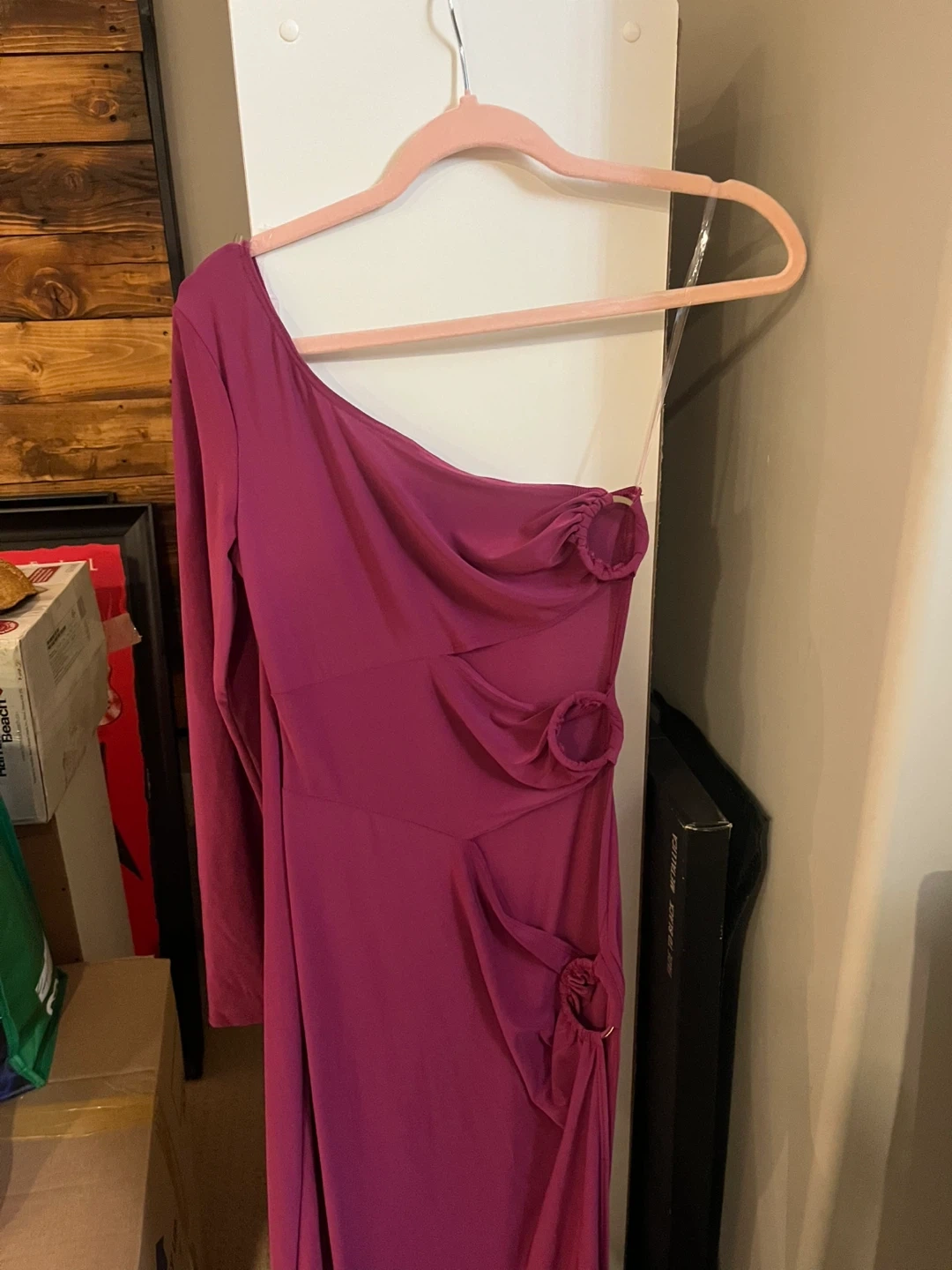 Selling a Fashion Nova one shoulder dress in size small. It's a beautiful magenta colour and in great condition! Perfect for a night out or a special occasion