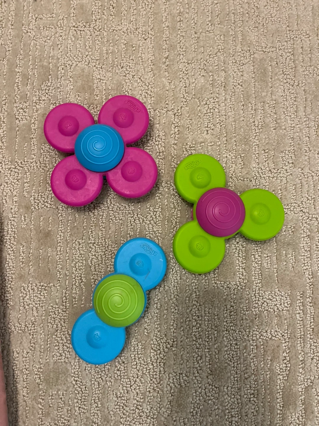 25Selling a set of Fat Brain Toys Squigz! These fun little suction toys come in a variety of colours like pink, blue, and green. They're great for kids of all ages and can stick to almost any surface