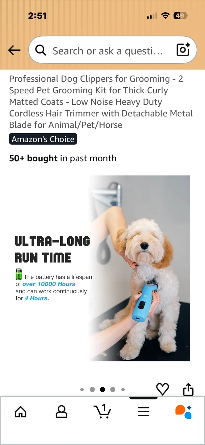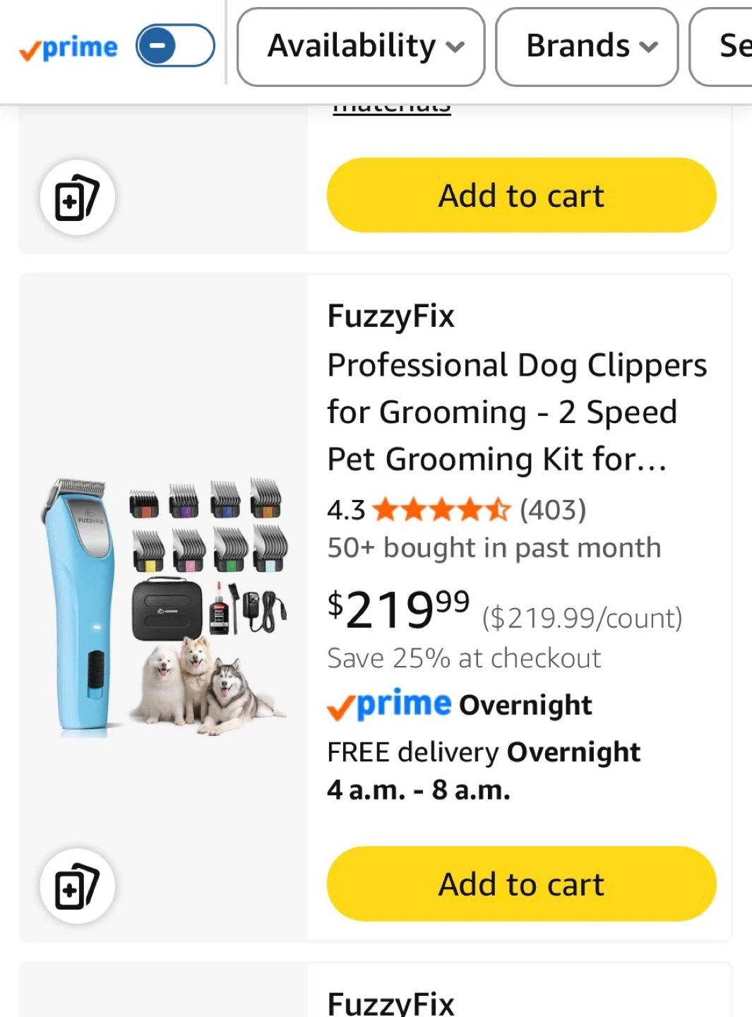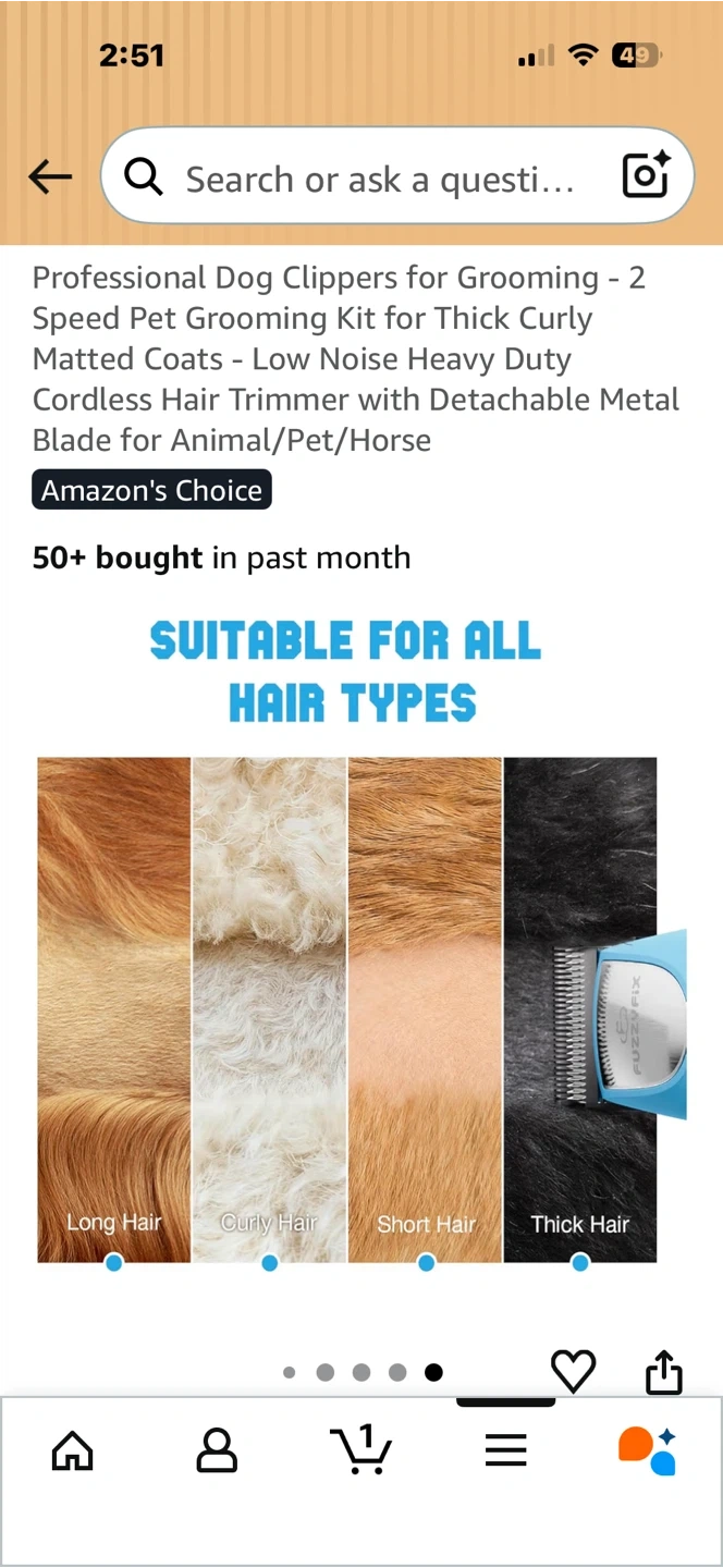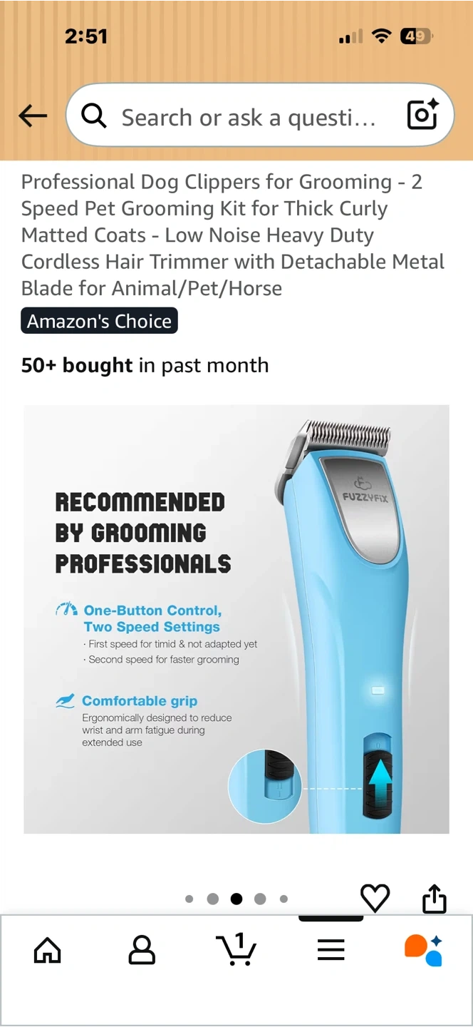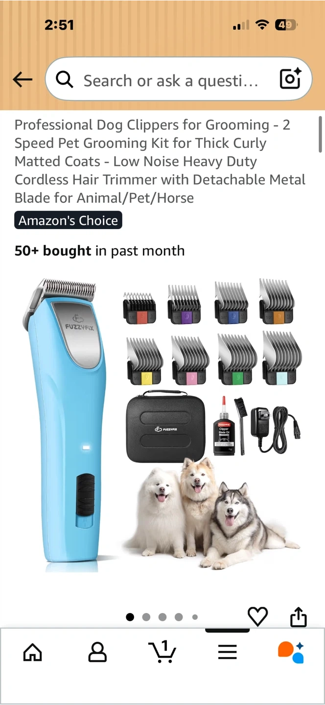 This is a FuzzyFix professional dog clipper grooming kit. It features a 2-speed motor and comes with a detachable metal blade. The kit includes various comb attachments, a charging cable, and a storage case.