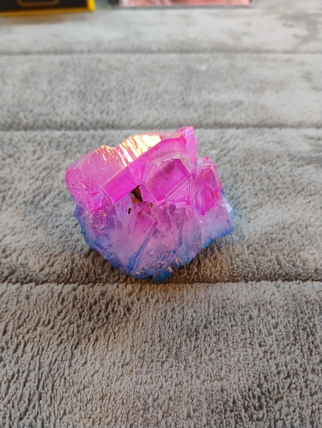 Here's a beautiful aura quartz crystal with a stunning pink and blue gradient! It's a lovely piece to add to any collection or as a unique decorative item for your space