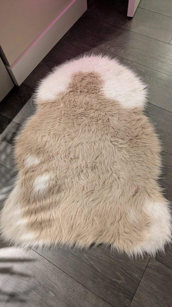 215Beige and white faux fur rug. Soft and fluffy. #ThriftyPicks 📍Pick up/Meet up: Marine Drive Station in front of T&T supermarket OR Vancouver Pacific Centre in front of Garage retail store. 💵 cash only